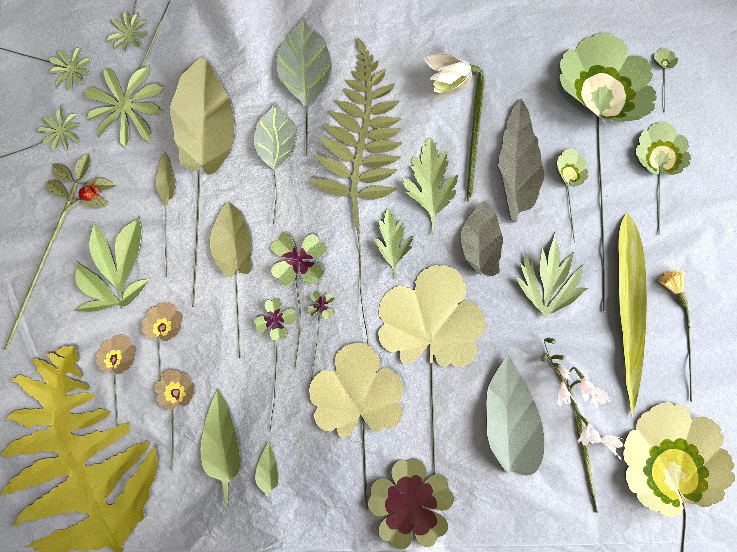Each leaf is cut by hand, painted, folded and styled into position.